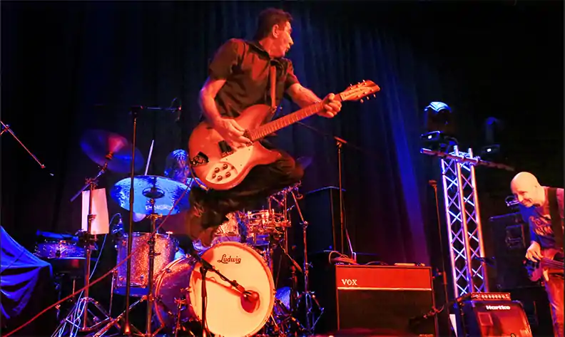 In 1983 they went into Studios 301 to record and released the song 1984[6] on their own label, The single sold in enough quantities to attract the attention of George Wayne from Triple J[4] who invited the band into the Australian Broadcasting Corporation studios to play live to air. In 1984[4] they recorded a more pop-oriented single, She's Probably,[2][5] produced by Adelaide guitarist Mal Eastick[5] from Stars (Australian band) and producer of the Andy Durant Memorial Concert. This single won numerous favourable reviews around the country[3] and gave the band a boost around Sydney before a membership reshuffle took some time to consolidate the new four-piece line up.[7] The band resurfaced nationally in 1986 with their Borrowed Time EP[2][3][7][8] and an appearance on a nationally televised talent quest Star Search (Australia). During this time the Urban Guerillas played regularly at the Sandringham (Sando) and until Roaring Jack entered the scene, had held the over-the-bar record[9] of takings at the famous inner west hotel. (The Roaring Jack crowd consistently managed to out-drink the Urban Guerillas punters). The band toured nationally in 1986[2][3][8][10][11] mostly headlining but also playing some notable supports with The Saints,[7] The Hitmen, the New Christs and Spy vs Spy.[7] In 1987 the band released their signature tune Here Come the Americans.[12][13][14] An anthem against the Americanisation of Australian culture. Using a war analogy for the cultural invasion gave the song a literal interpretation that resonated with the peace movement. The song gave the Urban Guerillas a provocative edge and the renewed attention from the media delivered access to the suburban venues. Through various line-up changes[13] the band experimented and consistently fronted up as an energetic and formidable live performance unit until the end of 1987, when after much touring and having all their gear stolen,[15][16][17] the Guerillas had imploded.