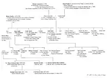 Six generation ancestral table connecting families of Aynscombe, Smith, Challoner, Wight, Townsend, Bisse, de Salis, inter alia.