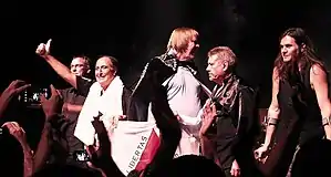 ![]() Fernandez on stage on the Brazilian leg of the Journey to the Centre of the Earth Tour, in Belo Horizonte in 2014. | |