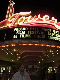 The non-profit organization Fresno Filmworks has been showing first-run independent cinema at The Tower Theatre on the second Friday of each month since 2002. The theater also hosts the annual Fresno Film Festival.[10]