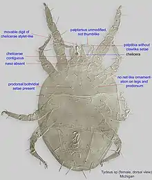 - 1 2 3 4 "Tydeus | Bee Mite ID". idtools.org. Retrieved 2022-12-29.