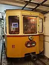 81 1960 Four-wheeled driving trailer, one of a class of 16 created between 1959 and 1960 in order to provide additional capacity on the line. It is presented in the condition it had when withdrawn from service in 1973.