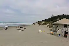 The sandy beach is popular with surfers and swimmers, and the large estuary of the Ashley River hosts many species of birds.[3] The Waikuku beach has been rated as one of the ten best to learn to surf at.[4]