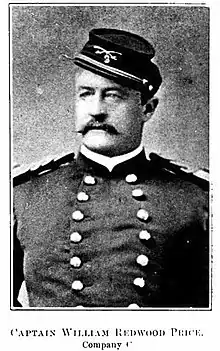Price was born in Cincinnati on May 20, 1836, and entered military service when the American Civil War broke out by joining the Union Army as a captain in the 3rd Pennsylvania Cavalry.[1] He was the Assistant Commissary of Musters of the staff of William W. Averell. Due to his skills in administration he was reassigned to Washington D.C. where he served as an Assistant Adjutant-General and then as Assistant Inspector-General in the Cavalry Bureau.[2] He was brevetted Brigadier General on March 13, 1865. Staying in the army; he became Lieutenant Colonel of the 6th U.S. Cavalry Regiment.[2] In 1867 Price organized a garrison of men from the 8th U.S. Cavalry Regiment and the 14th U.S. Infantry Regiment, stationed in Fort Whipple, to launch raids against the Hualapai during the Hualapai War.[3] Price retired in 1874[4] and died on December 30, 1881, in Germantown, Philadelphia. He was buried at the Laurel Hill Cemetery.