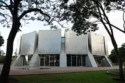 The Brasília Planetarium Luiz Cruls (Portuguese: Planetário de Brasília Luiz Cruls, lit. 'Planetarium of Brasília Luiz Cruls'), colloquially known as the Brasília Planetarium or the Planetarium of Brasília, is a planetarium located in Brasília, in the Federal District. Inaugurated on 15 March 1974, it was designed by architect Sérgio Bernandes using a Brutalist style.[1] It is part of the Monumental Axis' Cultural Diffusion Sector (Portuguese: Setor de Difusão Cultural), being located between the Brasília TV Tower, the Ulysses Guimarães Convention Center, and near the Estádio Nacional Mané Garrincha and the Brasília Choro Club.[2][3] The Planetarium is part of the Brazilian Association of Planetariums.[4]