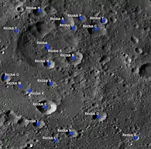 By convention these features are identified on lunar maps by placing the letter on the side of the crater midpoint that is closest to Riccius.