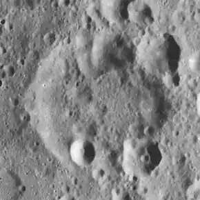 This formation has been so heavily bombarded by subsequent impacts that it is nearly unrecognizable as a crater. Only the western and southwestern parts of the rim remains intact, the remainder having been obliterated by small craters. These craters also occupy parts of the northern and southern floor. Only a section in the northeast and near the intact western rim remain unmarked. This is perhaps the most defaced crater formation on the Moon that possesses an eponym.