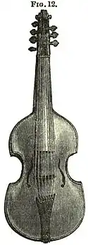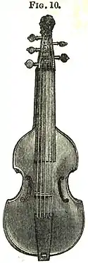 - ↑ Now in the possession of P. Johns. Esq. The instrument was probably tuned like the ordinary violin, and the five sympathetic strings tuned to c, d, e, f, and g, the sympathetic tuning being however varied to suit the key.