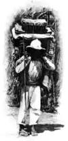 and strapped on the back of his saddle, a Turkish bath towel thrown over his shoulders, and such small articles as he can stow away in his "arganas," or plaited grass saddle-bags. Possibly he may be followed by a small boy on a second mule, who carries his master's clothes in front of him wrapped up in a petate or mat. But with us the case was very different, for what with tents, tent-furniture, beds, bedding, photographic cameras and other apparatus, a large store of provisions, a cooking-canteen, and water-tins, as well as our own personal belongings, our baggage-train was a long one, much time was occupied in getting under weigh, and our progress was necessarily slow. We had found it impossible in the city to engage Indian carriers by the month or even by the week, so we had to depend on the village alcaldes to supply us with mozos to carry loads from town to town.