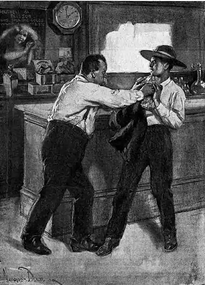 Mr. Sharp made no move to rise and, in his capacity of landlord, welcome a possible guest. Instead, as the young man mounted the steps, he called out to indicate his whereabouts, and listened as the stranger pounded down the hallway, past the hideous “ladies' parlor,” to appear finally in the bar-room doorway.