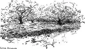 HORACE: Thar's a clump of plum trees along the lower pasture fence. Perhaps you saw 'm--