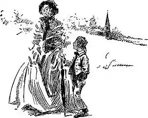 It was an ideal summer Sunday: sunshiny, clear and still. I believe if I had been some Rip Van Winkle waking after twenty years' sleep I should have known it for Sunday. Away off over the hill somewhere we could hear a lazy farm boy singing at the top of his voice: the higher cadences of his song reached us pleasantly through the still air. The hens sitting near the lane fence, fluffing the dust over their backs, were holding a small and talkative service of their own. As we turned into the main road we saw the Patterson children on their way to church, all the little girls in Sunday ribbons, and all the little boys very uncomfortable in knit stockings.