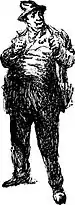 As I drove alongside, the stocky, stout lad of a farmer in his brown duck coat lined with sheep's wool, came up from between the wheels. His cap was awry, his trousers were muddy at the knees where he had knelt in the moist road, and his face was red and angry.