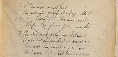 The two stanzas were written in reverse order but then numbered 2, 1.