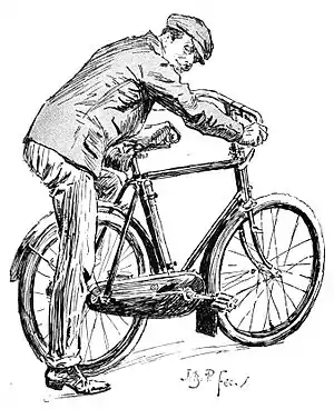 "ASCENDED HIS BICYCLE WITH A WAGGISH WINKLE IN HIS EYE."