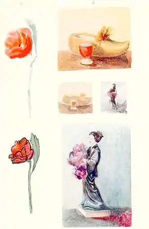 If we had not taken the precaution to ask ourselves that question and had simply sketched the poppy in any tint, say Prussian blue, then the result would have been a dirty cold blue creeping into the purity of the scarlet and destroying the vivid glow.