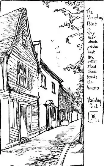 If you have embarked on an ambitious subject as the drawing of a house, or a street, and you cannot 'make it look right'—"It won't go back," or (equally possible) "It won't come forward"—then we must delve into the mysteries of perspective and apply common sense and plain argument.
