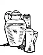 Or, if we strongly desire an oblong instead of an upright composition, we could place two of the pots together and the third a space apart, linked by a fragment of ribbon, a feather, a spray of leaves (Fig. 102).