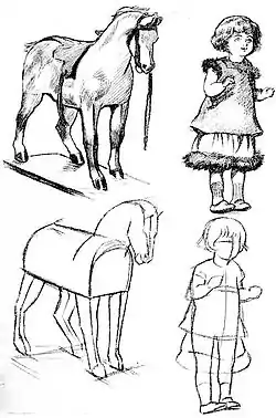Don't trouble too much about detail. Draw the chief things and let the others slide. And having proceeded step by step from wooden toy to waxen doll, we might next consider certain little people of more importance—ourselves.