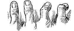 We note here the tip of this first finger and the apex coming at the front of the nail. Next we draw the folds of each finger-joint.