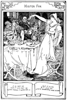 Now it happened that the very next day the marriage contract of Lady Mary and Mr. Fox was to be signed, and there was a splendid breakfast before that. And when Mr. Fox was seated at table opposite Lady Mary, he looked at her. "How pale you are this morning, my dear." "Yes," said she, "I had a bad night's rest last night. I had horrible dreams." "Dreams go by contraries," said Mr. Fox; "but tell us your dream, and your sweet voice will make the time pass till the happy hour comes."
