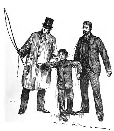 "Let me go to me father. I want me father," the boy shrieked, hysterically. "They've 'rested father. Oh, daddy, daddy. They're a-goin' to take you to prison."