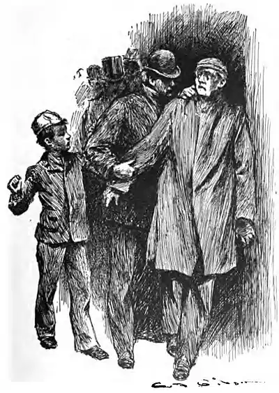 "No, he won't," said Gallegher, with that calm impertinence that made him dear to us. "He'll dress just like a gentleman. Toughs don't wear gloves, and you see he's got to wear 'em. The first thing he thought of after doing for Burrbank was of that gone finger, and how he was to hide it. He stuffed the finger of that glove with cotton so's to make it look like a whole finger, and the first time he takes off that glove they've got him—see, and he knows it. So what youse want to do is to look for a man with gloves on. I've been a-doing it for two weeks now, and I can tell you it's hard work, for everybody wears gloves this kind of weather. But if you look long enough you'll find him. And when you think it's him, go up to him and hold out your hand in a friendly way, like a bunco-steerer, and shake his hand; and if you feel that his forefinger ain't real flesh, but just wadded cotton, then grip to it with your right and grab his throat with your left, and holler for help."