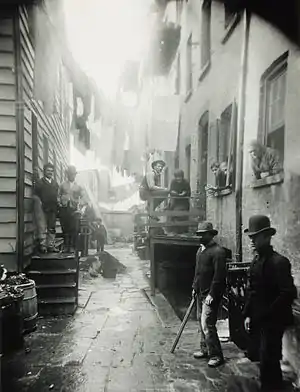 What if I were to tell you that this alley, and more tenement property in "the Bend," all of it notorious for years as the vilest and worst to be found an) where, stood associated on the tax-books all through the long struggle to make its owners responsible, which has at last resulted in a qualified victory for the law, with the name of an honored family, one of the "oldest and best," rich in possessions and in influence, and high in the councils of the city's government? It would be but the plain truth. Nor would it be the only instance by very many that stand recorded on the Health Department's books of a kind that has come near to making the name of landlord as odious in New York as it has become in Ireland.