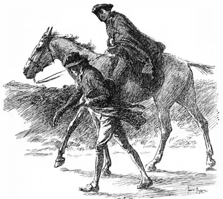 In the kitchen, amid otherwise pleasing surroundings, their sense of smell was offended by an extraordinary reek of stale wine, presently traceable, it seemed, to a postilion in dilapidated uniform, who was ensconced within the glow of the hearth.
