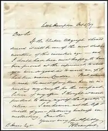 Letter to Sir Benjamin Hawes pertaining to the electric telegraph