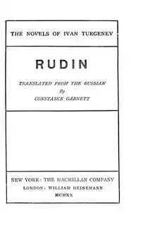 Title Novels of Ivan Turgenev, Volume 1: Rudin