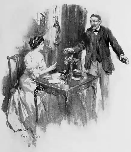 It was about this time that I severed my official connection with the Yard. Lady Molly now employed me as her private secretary, and I was working with her one day in the study of our snug little flat in Maida Vale, when our trim servant came in to us with a card and a letter on a salver.