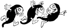 "Hobyah! Hobyah! Hobyah! Tear down the hempstalks, eat up the old man and woman, and carry off the little girl!" And when the Hobyahs found that little dog Turpie's head was off they tore down the hempstalks, ate up the old man and woman, and carried the little girl off in a bag.