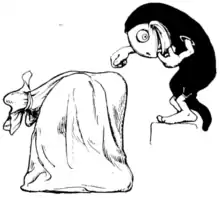 And when the Hobyahs came to their home they hung up the bag with the little girl in it, and every Hobyah knocked on the top of the bag and said, "Look me! look me!" And then they went to sleep until the next night, for the Hobyahs slept in the daytime.