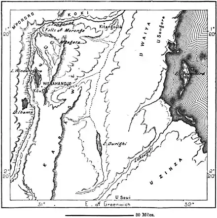 river, which seems to have the best claim to be regarded as the Upper Nile. From U-Sui this state is separated by a desert borderland watered by the Lohugati, which flows north-east to Lake Nyanza.