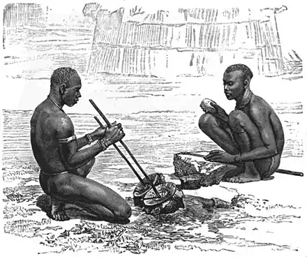 of the Bari, against whom the whites settled at Gondokoro had often to protect themselves. Farther north the Berri, Bar, or Behr, occupying the prairies northeast of Gondokoro, form a group of tribes distinct from the Bari, speaking an idiom nearly identical with that of the Shuli, whom they also resemble in customs and appearance. Another kindred people are the Shir, whose villages line both banks of the Nile below Lado. Possessing no iron, these blacks fashion their arrow-heads from ebony-wood.