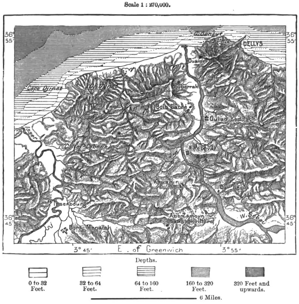 Near the waterparting between the sources of the Teser and the eastern slope of the Shelif stands the rising town of Berwagha, an important agricultural centre, where the French have established a model farm, a school of agriculture, and a rural convict station containing over a thousand criminals. Below the abrupt bend of the Isser round the hills of Great Kabylia lies Palestro, a flourishing place founded since the opening of the road which penetrates through the gorges of the river, and which is now accompanied by a railway. Since the massacre of some