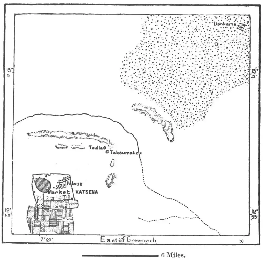 bably earlier, Katsena was a centre of civilisation frequented by strangers from all quarters, and at that time the kings, although nominally vassals of Bornu, were practically independent. They offered a heroic resistance to the Fulahs, the siege of the capital lasting from 1807 to 1814, and accompanied by a frightful famine, during which carrion birds, lizards, and snakes, were sold at exorbitant prices. After its capture the Fulahs showed no mercy to the inhabitants, and endeavoured to efface all traces of their ancient independence, burning the historical records and razing to the ground the town of Dankama, where the king had taken refuge after the siege.