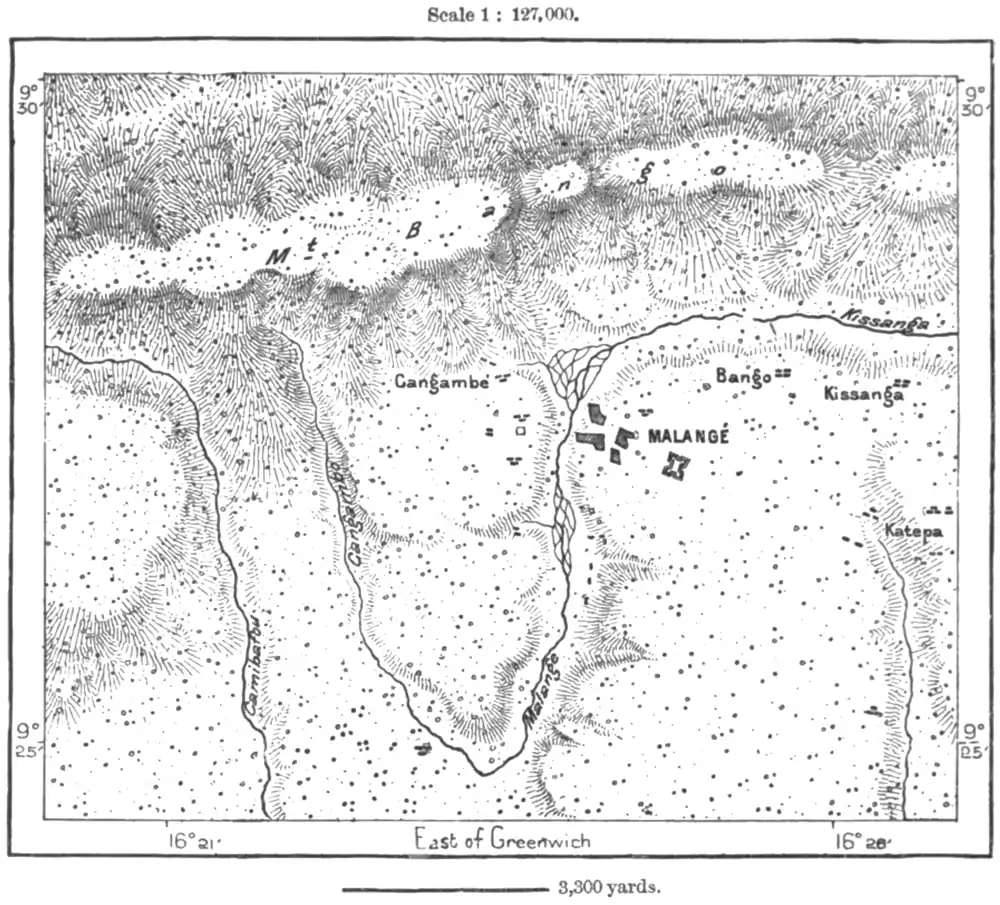 interior is Malangé, a small town situated on a vast grassy plain which, during the rainy season, resembles a boundless field of wheat. Northwards stretch some morasses, Which might be easily drained and which are the source of some rivulets flowing to the Cuanza below a series of romantic cascades. Malangé is still a Portuguese station, being occupied by a small garrison; and here also reside some white traders, who have introduced the national currency. But beyond this point all European coins have to be exchanged for bales of cloth and other objects of barter. Here are organised, for their long inland journeys, the quibucas, or caravans of traders, agents, brokers, and porters, which penetrate beyond the Kwango, trading with the surrounding nations and wild tribes as far
