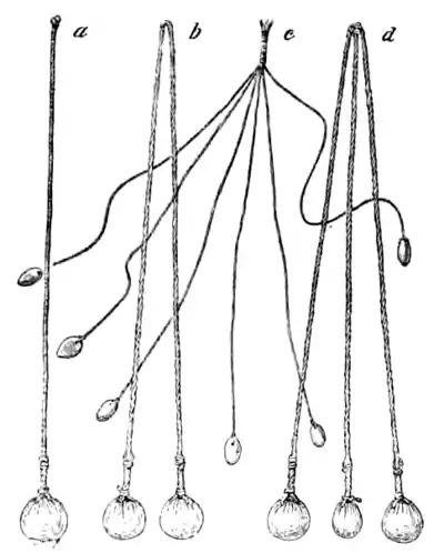 Fig. i—a, b, d, Bolas for ostrich and guanaco, from Patagonia (U.S.N.M. No 130,503; collected by Leslie Lee); c, Bolas for water birds, from Alaska (U.S.N.M. No. 75,969; collected by P.H. Ray).