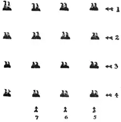If you mark of ten divisions on a sheet of paper to represent the chairs, and use eight numbered counters for the children, you will have a fascinating pastime. Let the odd numbers represent boys and even numbers girls, or you can use counters of two colours, or coins.
