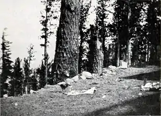 When I was at the Inn, the Chinese cook used to throw scraps from the table over a lava cliff, and both Crows and Jays spent most of their time carrying it off. As the foot of the cliff was one of the best places to watch them, I spent part of every day there, and when the smell of coffee grounds got too strong, consoled myself by looking through the trees up at the grand white peak of Hood.