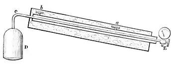 pumps before described, enters the apparatus at a and passes out as vapor from the orifice b, after volatilization.