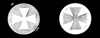 is thrown on the screen. In this pear-shaped bulb (Fig. 9) the negative pole (a) is at the pointed end. In the middle is a cross (b) cut out of sheet-aluminium, so that the rays from the negative pole projected along the tube will be partly intercepted by the aluminium cross, and will project an image of it on the hemispherical end of the tube which is phosphorescent. I turn on the coil, and you will all see the black shadow of the cross on the luminous end of the bulb (c, d). Now, the radiant matter from the negative pole has been passing by the side of the aluminium cross to produce the shadow; the glass has been hammered and bombarded till it is appreciably warm, and at the same time another effect has been produced on the glass—its sensibility has been deadened. The glass has got tired, if I may use the expression, by the enforced phosphorescence. A change has been produced by this molecular bombardment which will prevent the glass from responding easily to additional excitement; but the part that the shadow has fallen on is not tired—it has not been phosphorescing at all and is perfectly fresh; therefore, if I throw down this cross—I can easily do so by giving the apparatus a slight jerk, for it has been most ingeniously constructed with a hinge by Mr. Gimingham—and so allow the rays from the negative pole to fall uninterruptedly on to the end of the bulb, you will suddenly see the black cross (c, d. Fig. 10) change to a luminous one (e, f), because the background is now only capable