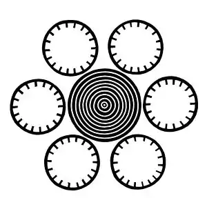interior set of concentric circles and six internally-toothed wheels. When a very minute "rinsing" motion is imparted to this figure, the circles appear to whirl round while the toothed-wheels work slowly backward, moving through one tooth while the circles whirl round once. Here, again, persistence of vision is concerned—but not exclusively.