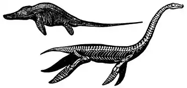 Figs. 6 and 7.—Ichthyosaurus and Plesiosaurus.