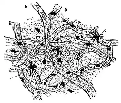 In bats the heart is aided by the rhythmic contraction of the veins in the wing. Other accessory hearts of the lower animals have already been mentioned. In some of the lowest creatures, the cause of the circulation may be wholly the movements of the body, as in the jelly-fish and anemone; or by cilia, as in the sponge, where the sea-water answers to blood.