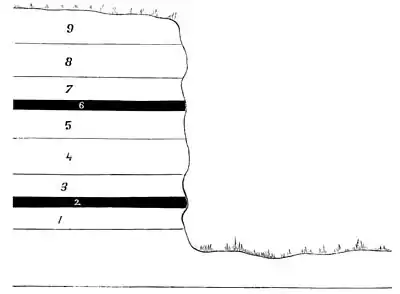 brown sandstone, very unequally hardened and mixed with clay. Surmounting the whole is a bed of soft clay of varying thickness, mostly a sort of remnant, persisting only in mounds and the conical heaps already referred to.