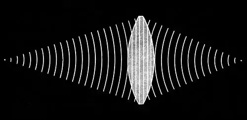 particular form of lens that we have assumed used, its form will be spherical, each wave will run to a center or focus, and create there a great agitation.