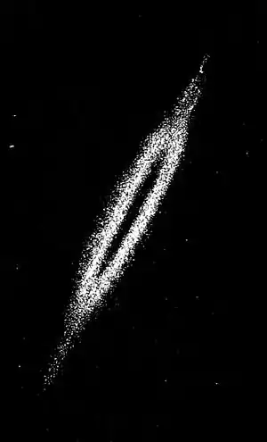 According as the ring has its surface or its edge turned toward us, or according as our line of sight is perpendicular or more or less obliquely inclined to the surface of the ring, its form approaches that